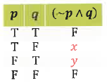 125. في جدول صواب العبارة $ (p \wedge q) \to (\neg p \wedge q) $ قيمة الصواب التي تحل محل $ x, y $ هي…