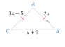 75. في الشكل ما قيمة $x$ التي تجعل المثلثين $\triangle ABC$ و $\triangle RTS$ متطابقين؟
