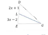 70. في الشكل إذا كانت $GL$ قطعة متوسطة؛ فما طول $DE$؟ (حيث $DL = 2x + 1$ و $LE = 3x – 2$)