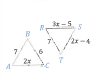 7. في الشكل ما قيمة $x$ التي تجعل المثلثين $ABC, RTS$ متطابقين؟