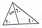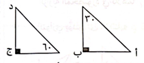 5. مثلث قائم الزاوية إحدى زواياه قياسها 60 ، قارن بين : القيمة الأولى: طول الضلع المقابل للزاوية 30، القيمة الثانية: طول الضلع المقابل للزاوية 60